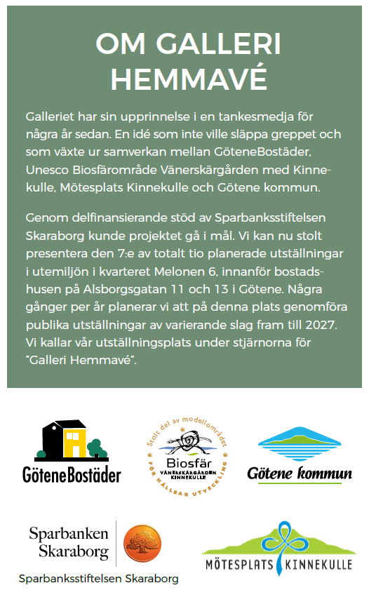 Nu är det dags för en ny utställning på Galleri Hemmavé, på gården bakom Alsborgsgatan 11 och 13 i Götene.