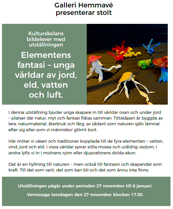 Ny utställning på Galleri Hemmavé – vernissage 27/11 kl 17:30